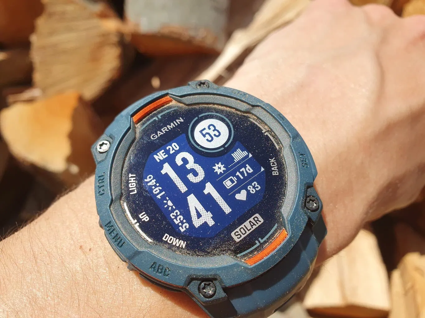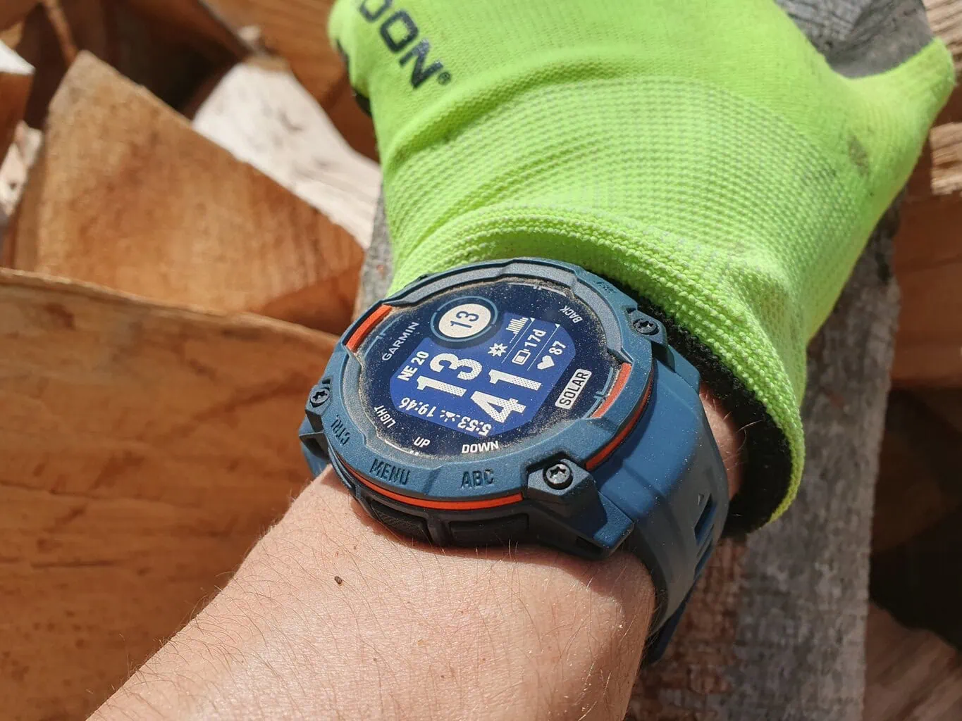 Innego słonecznego dnia, kiedy byłem bardziej aktywny na zewnątrz i nosiłem drewno opałowe z jednego końca podwórka na drugi, bez problemu zebrałem 250 000 luksów. Garmin Instinct 3 Solar mogą więc w zasadzie osiągnąć nieprzerwaną żywotność baterii, dokładnie tak, jak pisze producent.