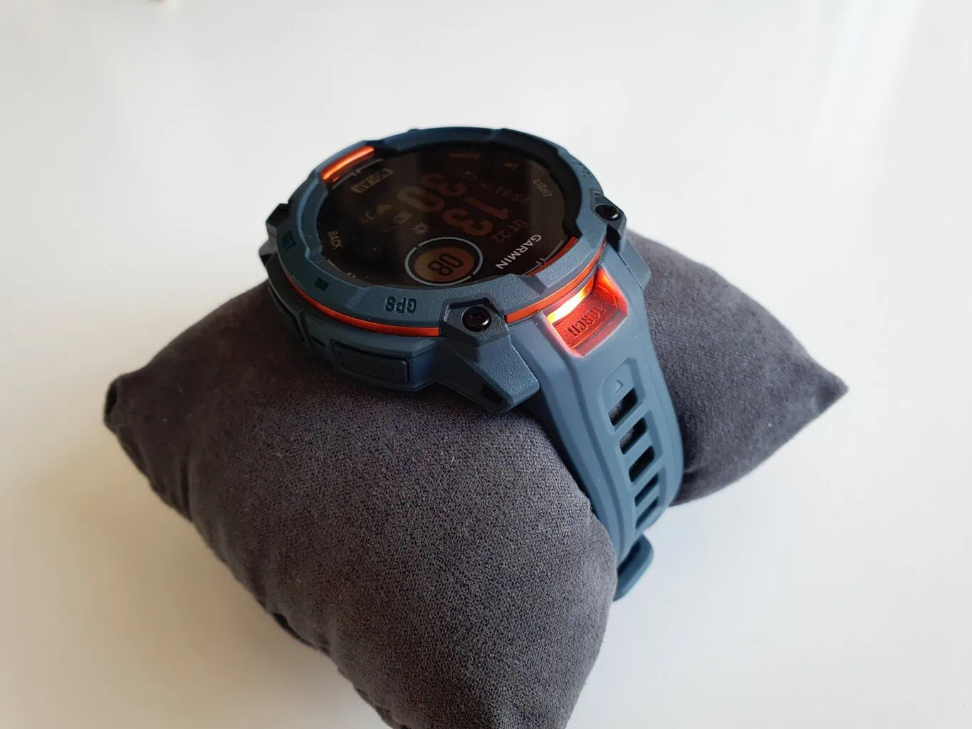 Oczywiście, zegarki spełniają wojskowy standard wytrzymałości MIL-STD-810 i są wodoodporne do głębokości 100 metrów. Na górnej stronie koperty we wszystkich wersjach (oprócz Instinct E) znajdziesz LED latarkę, która w poprzedniej generacji była dostępna tylko w wersji Instinct 2X. Osobiście bardzo doceniam fakt, że luneta ma teraz gładką powierzchnię. W poprzedniej generacji powierzchnia wokół wyświetlacza miała teksturę 3D, do której łatwo przyczepiały się zanieczyszczenia, takie jak błoto i ziemia.