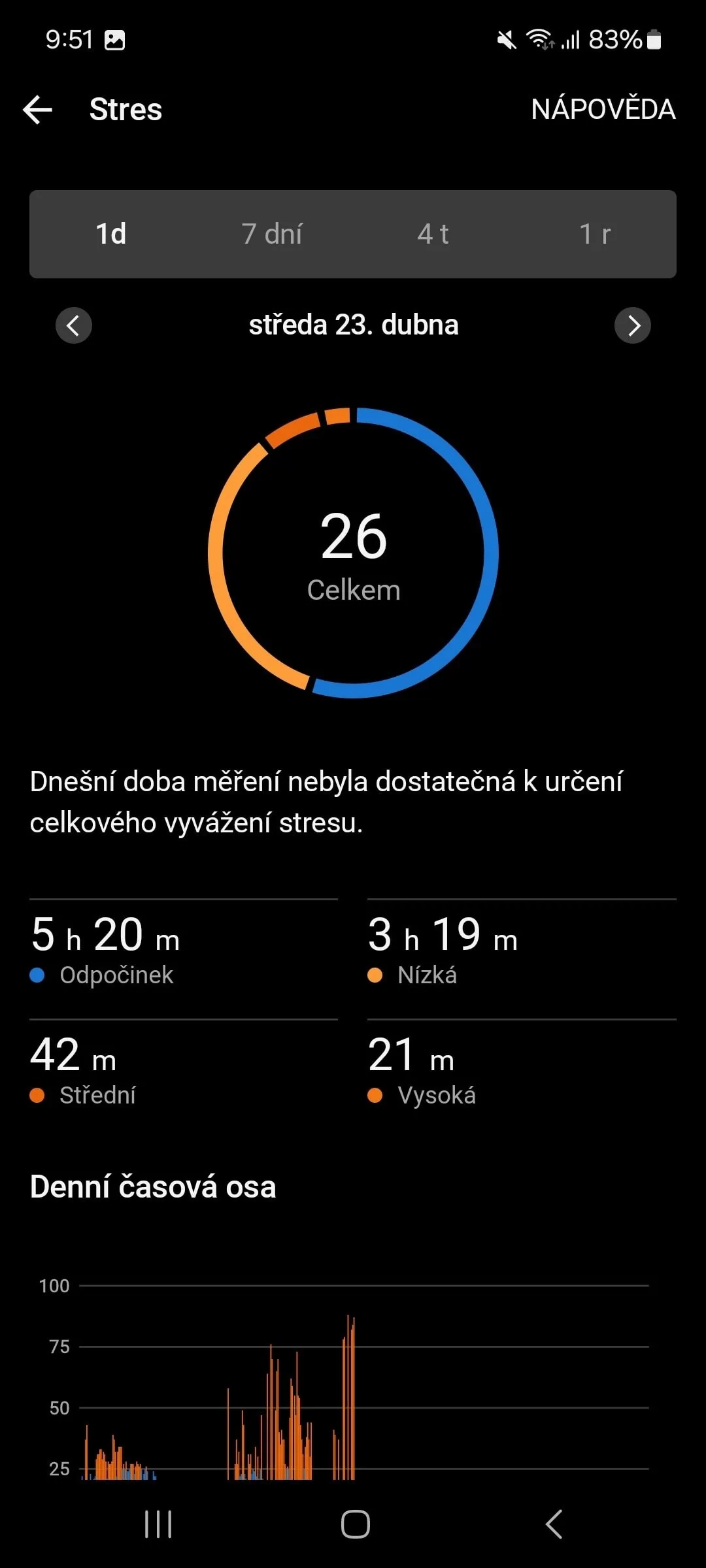 W moim przypadku wahania wartości były zgodne z oczekiwaniami. Gdy miałem prezentować swoje materiały przed większym audytorium, wartości wzrastały z niskiego do średniego poziomu stresu.