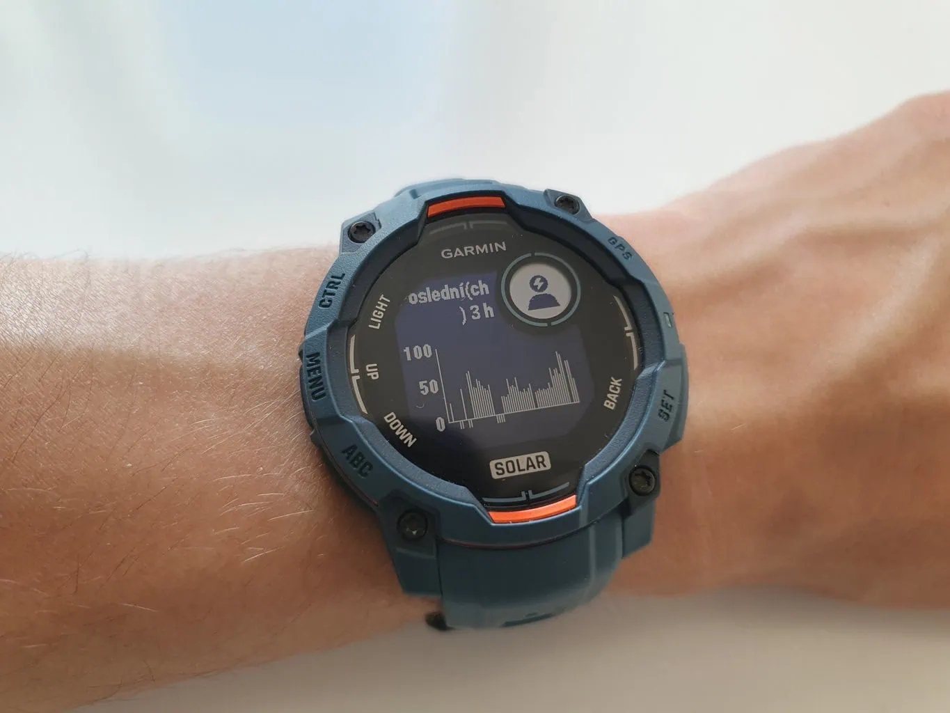 Powierzchnia solarna w Instinct 3 znajduje się na obwodzie wyświetlacza. Kiedy położyłem zegarek na bezpośrednim słońcu w godzinach od 11:30 do 14:30, zebrał aż 300 000 luksów, a poziom naładowania wzrósł o imponujące 12%. Jeśli chodzi o efektywność, nie mam im nic do zarzucenia.