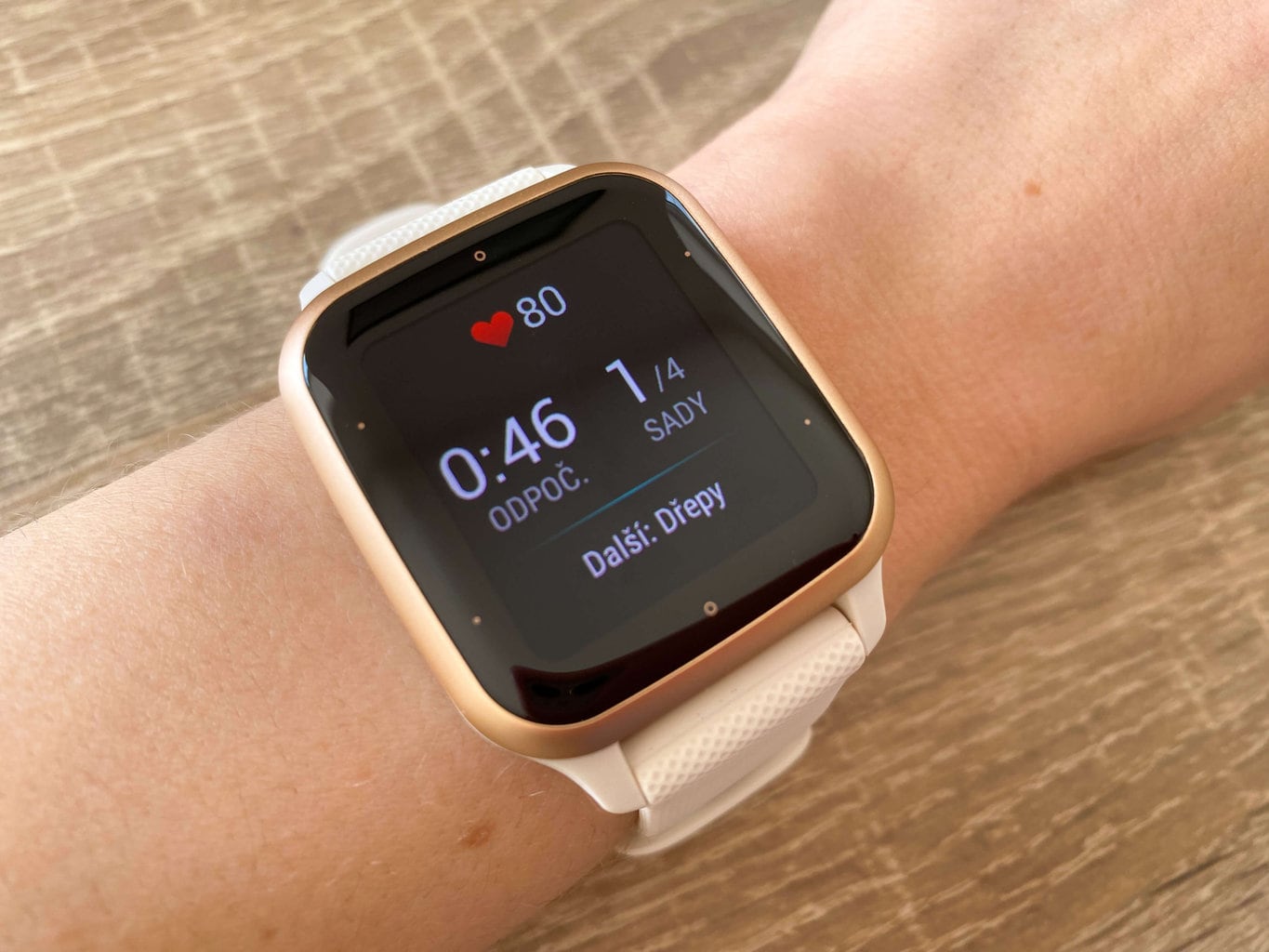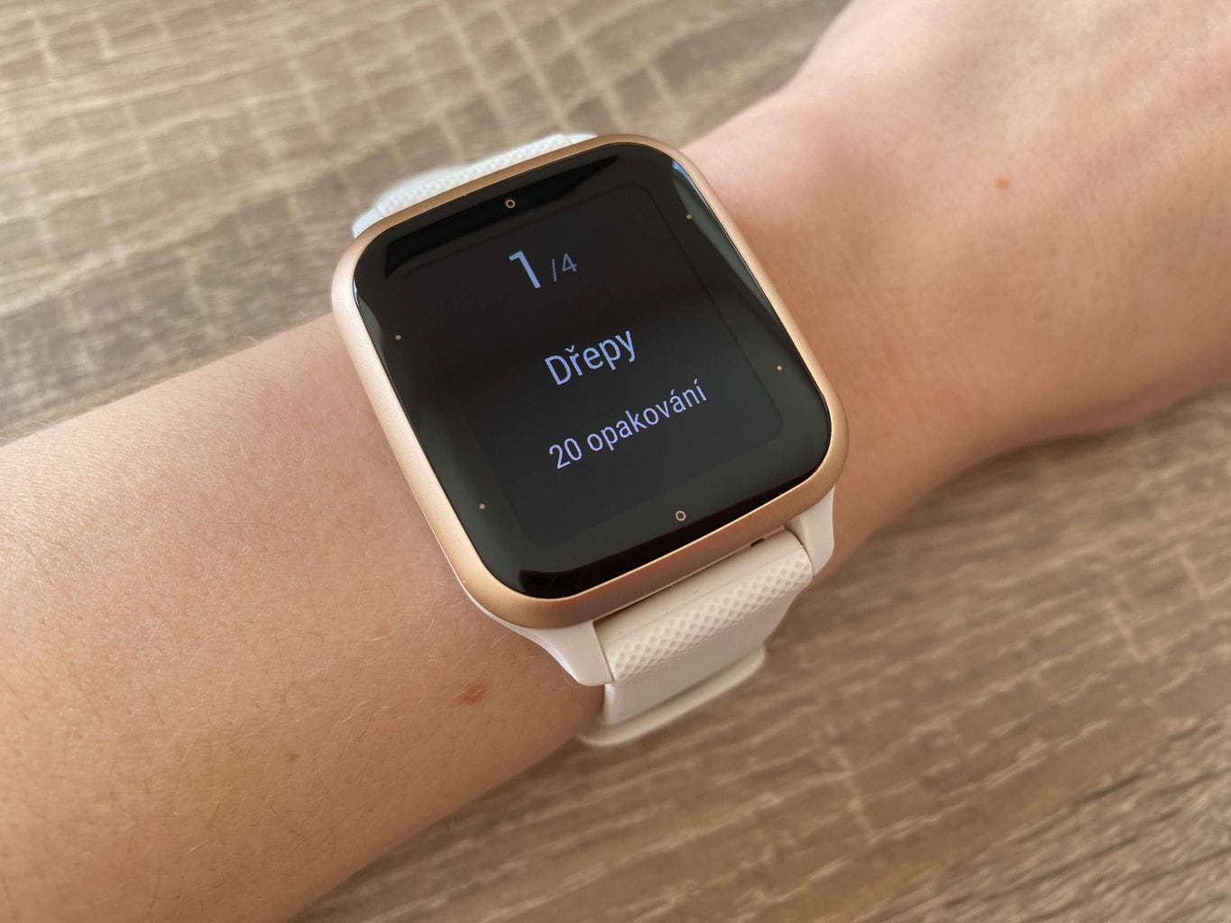 Ogromną zaletą są ustawione domyślnie ćwiczenia, dzięki czemu możesz pozwolić zegarkowi na prowadzenie Cię podczas treningu. Na wyświetlaczu zawsze możesz zobaczyć, które ćwiczenie powinno się wykonać, w tym liczbę powtórzeń lub czas, jaki należy na nie poświęcić.