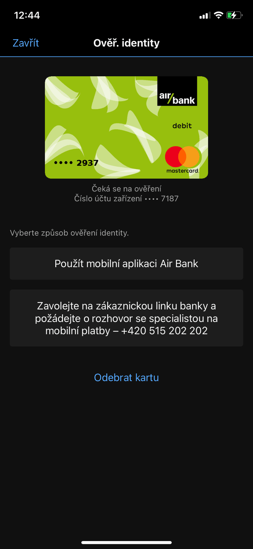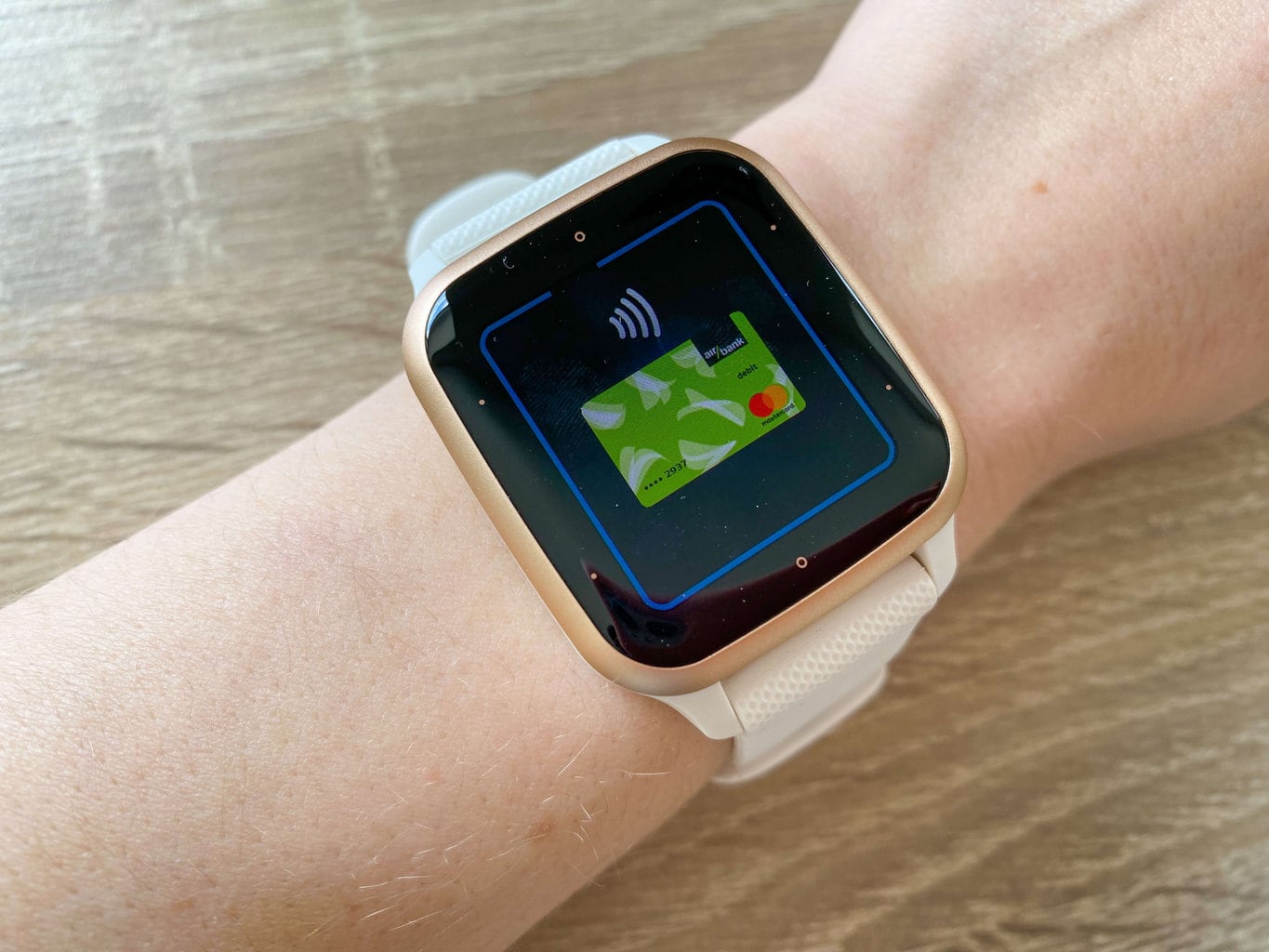 - Aplikacja mobilna poprosi Cię następnie o jednorazową weryfikację tożsamości, aby zapobiec nieautoryzowanemu użyciu karty. W naszym przypadku dodaliśmy kartę płatniczą Air Bank do Garmin Pay. Aby zweryfikować naszą tożsamość, mogliśmy skorzystać z aplikacji mobilnej Air Bank lub zadzwonić na linię obsługi klienta.