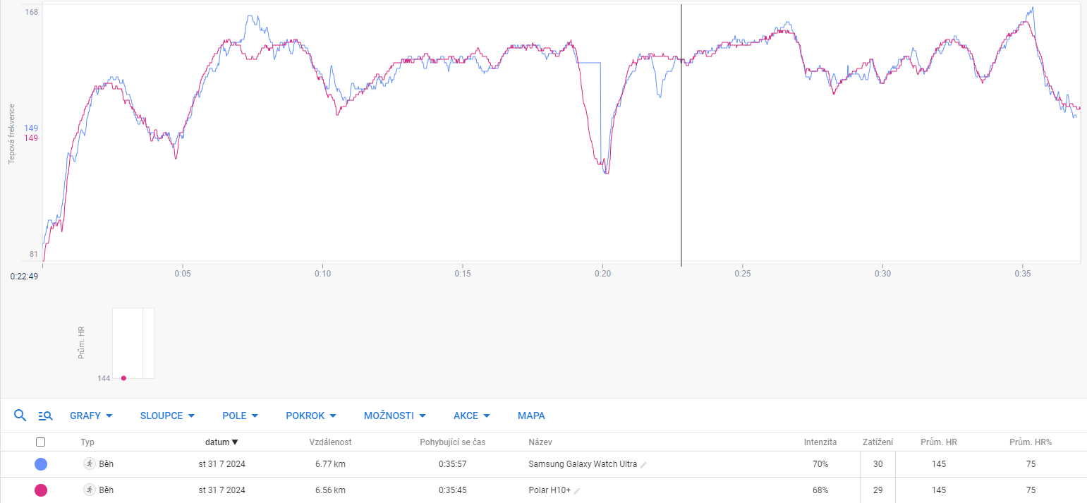 Porównanie tętna Samsung Galaxy Watch Ultra z pasem piersiowym Polar H10+