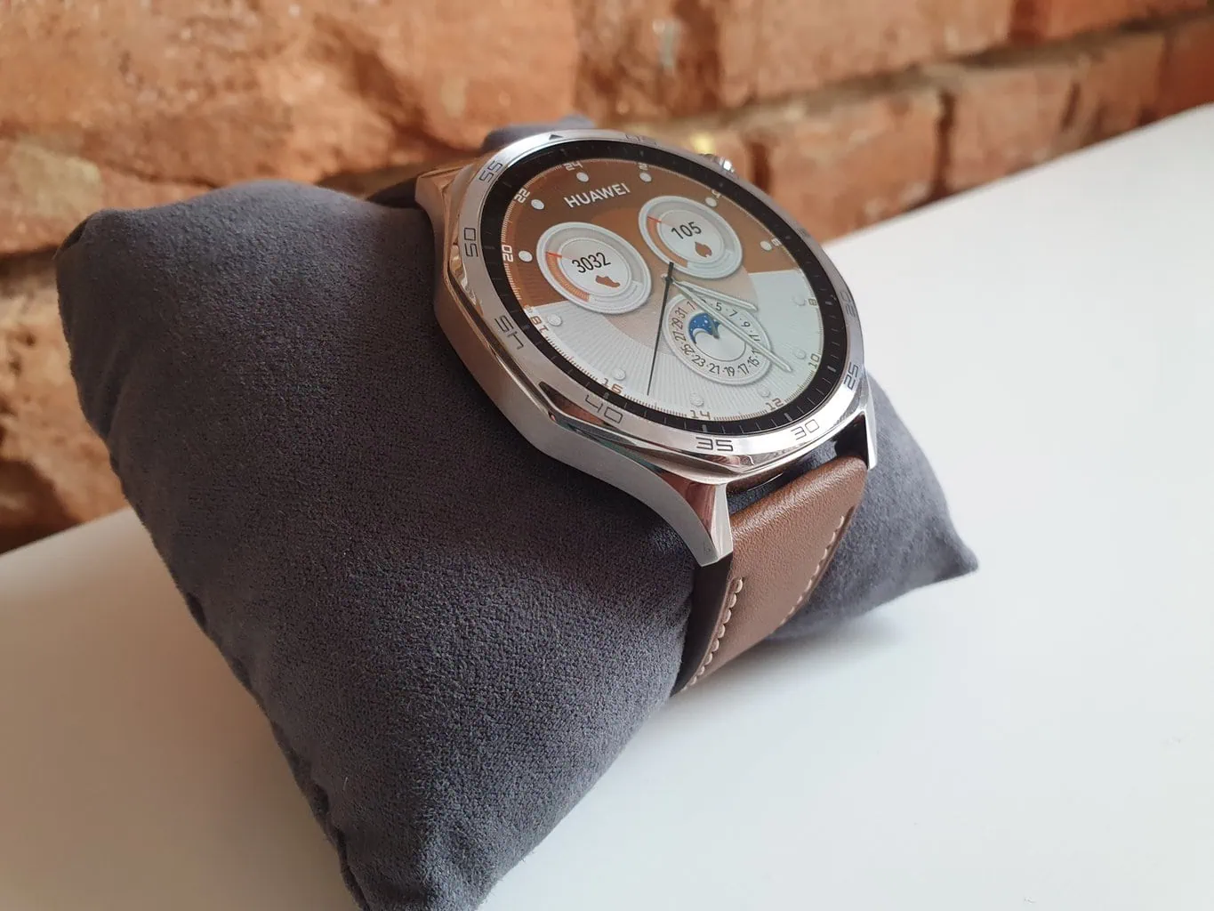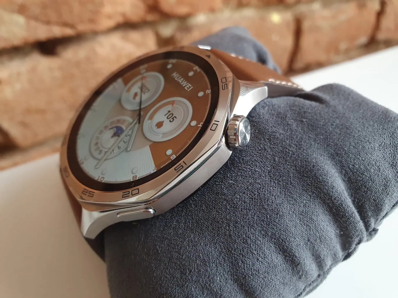Podobnie jak jego poprzednik, Watch GT piątej generacji posiada ośmiokątną stalową kopertę. Tym razem jednak jej krawędzie są nieco bardziej zaokrąglone. Pomimo tej drobnej zmiany, wygląd obu generacji jest nie do odróżnienia, co widać na poniższych zdjęciach. Bezel z cyframi na obwodzie chroni wyświetlacz przed uderzeniami z boku. Niestety, producent nie określił rodzaju zastosowanego szkła.