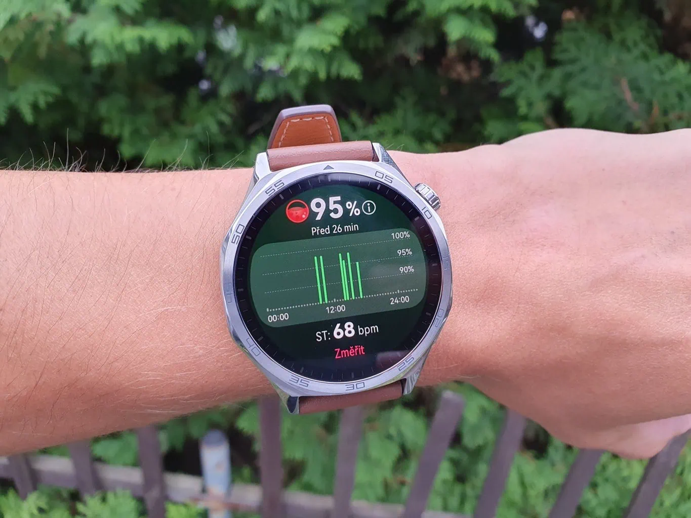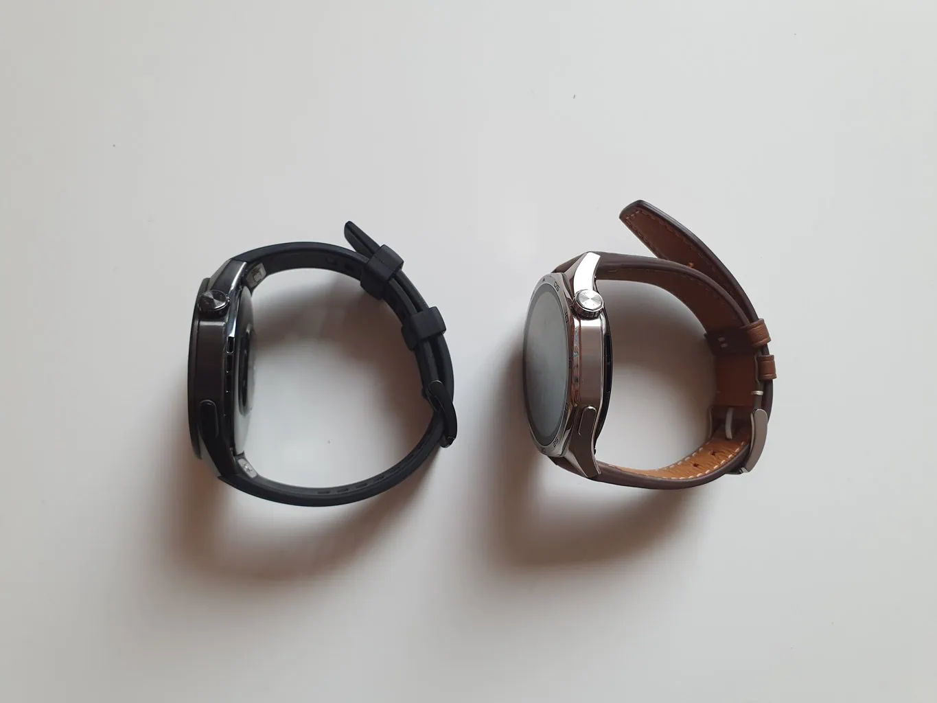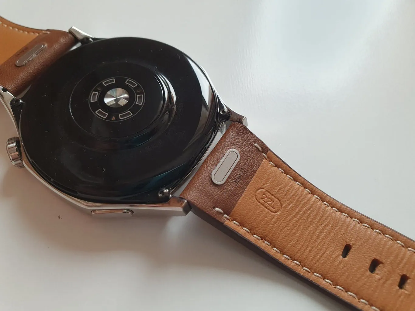 Byłem niezwykle zadowolony z komfortu noszenia Watch 5 Pro. Powodem było płynne przejście koperty w elastomerowy pasek, który sprawiał, że zegarek idealnie przylegał do mojego nadgarstka. Natomiast model Watch GT 5 posiada zwykły pasek 22 mm z mocowaniem i bez prowadnic. Testowałem zegarek ze skórzanym paskiem, który, choć wygląda elegancko, nie jest tak elastyczny i dobrze dopasowany jak elastomer w Watch 5 Pro.