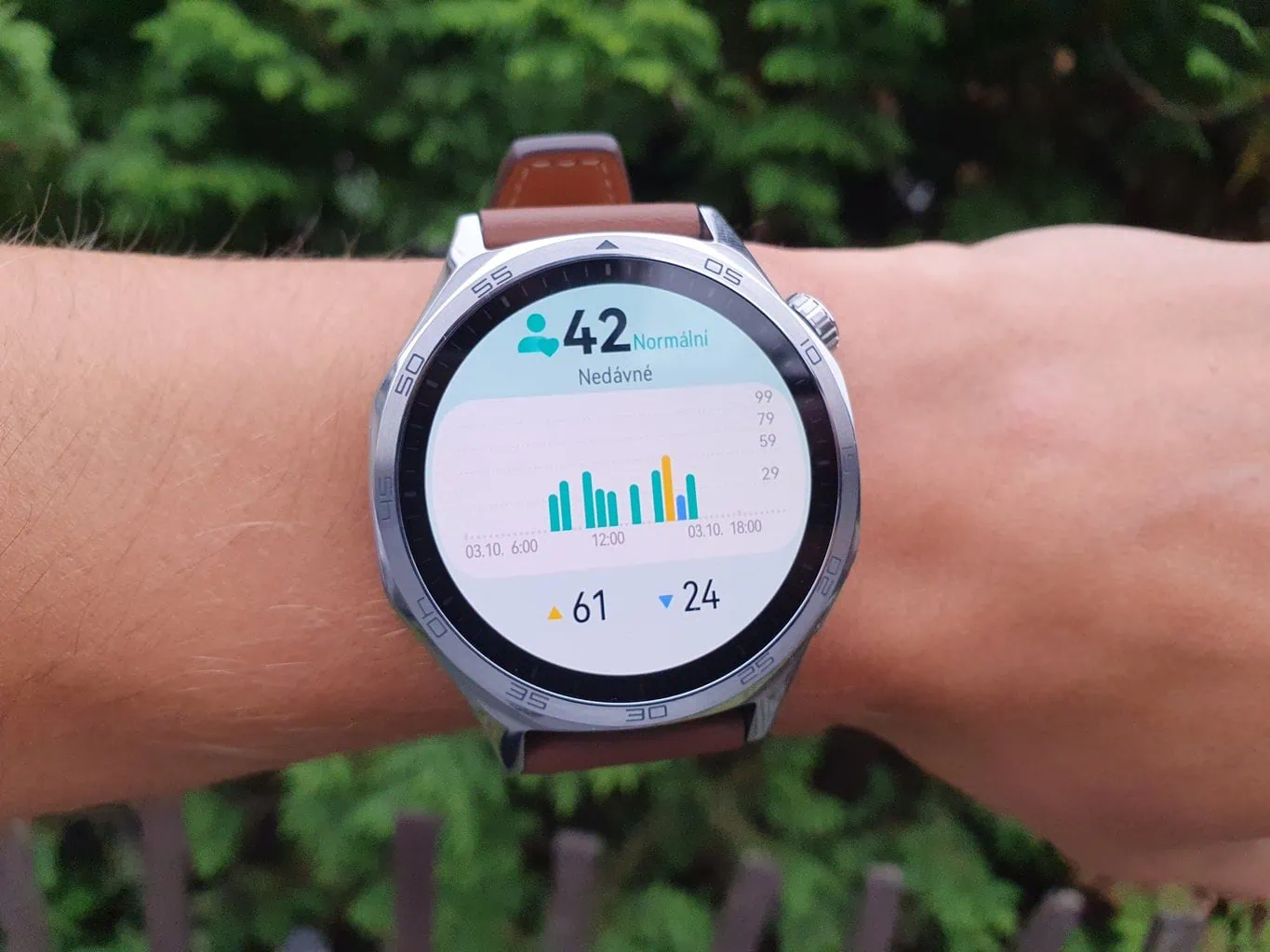 Monitorowanie stresu było dokładne, a jego wartości zazwyczaj zmieniały się zgodnie z oczekiwaniami. Krótko po napiętej i (w moim odczuciu) stresującej sytuacji zegarek pokazywał wyższe wartości, ale nie tak wysokie, jak bym się spodziewał. Może więc moje ciało jest lepiej przystosowane do odczuwania stresu, niż mi się wydaje.