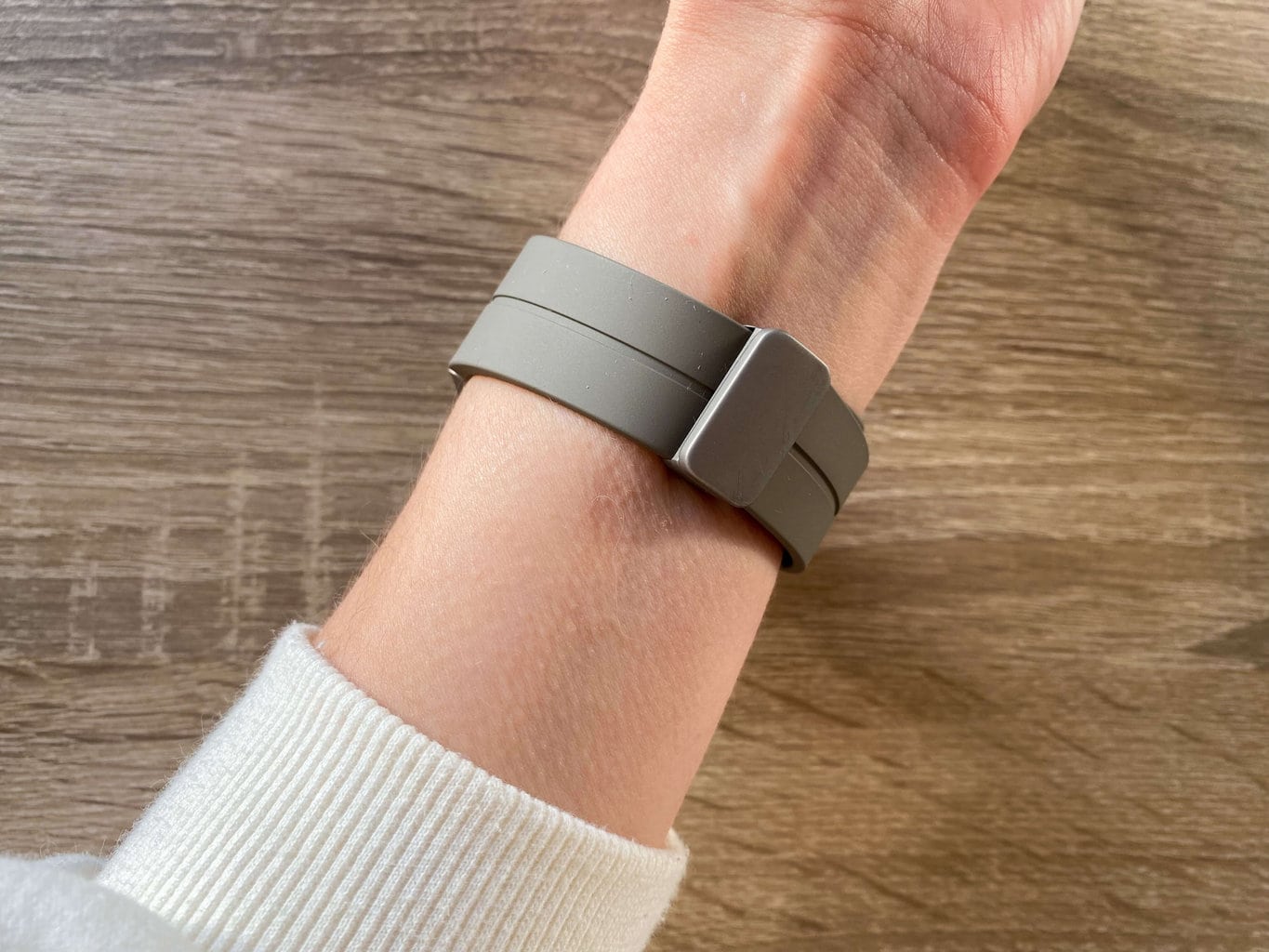 Kolejna różnica tkwi w zastosowanym pasku. Jest to gumowa opaska bez otworów z poręczną magnetyczną klamrą. Jednak mówiąc szczerze, nasz recenzent musiał przez chwilę pomyśleć zanim rozgryzł, w jaki sposób korzystać z niego po raz pierwszy.