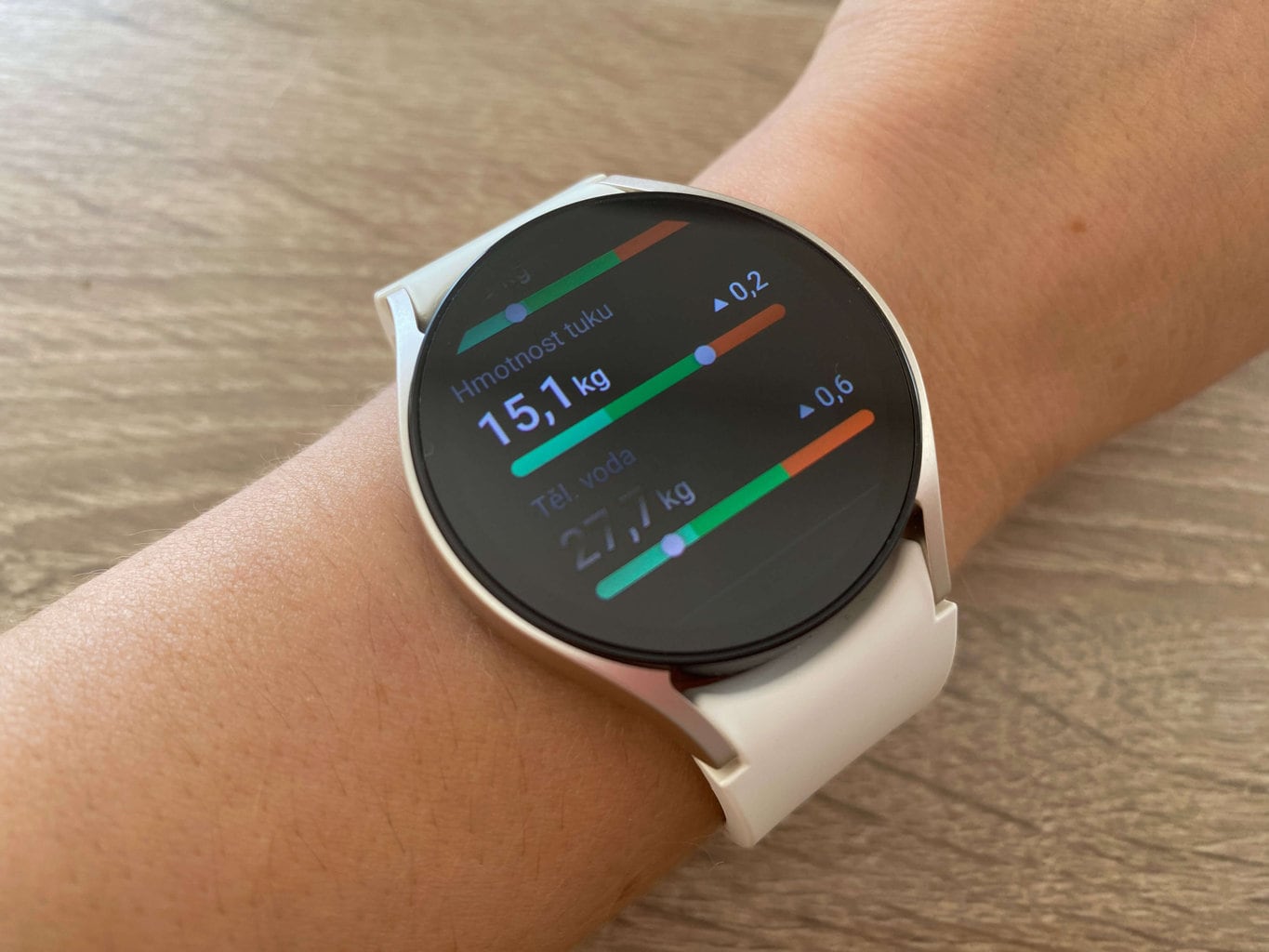 Zegarka można używać do szczegółowej analizy składu ciała. W rezultacie urządzenia wyświetla procentowy udział mięśni szkieletowych, tłuszczu i wody w naszym organizmie. Dostępny jest również szacunkowy wskaźnik BMI i BMR (tj. ilość energii wydatkowanej w spoczynku). Wartości te należy oczywiście traktować jako czysto orientacyjne, ale funkcja ta sprawdza się jako podstawowy przegląd stanu zdrowia. Zalecamy również korzystanie z wartości jako punktu odniesienia i sugerowanie rozwojem danej wartości w dłuższym okresie (ponieważ mogą one ulegać wahaniom). Na przykład: jeśli tracisz na wadze, a następnego dnia po ćwiczeniach zegarek zgłasza wzrost tkanki tłuszczowej, nie można wyciągać na tej podstawie żadnych sensownych wniosków.
