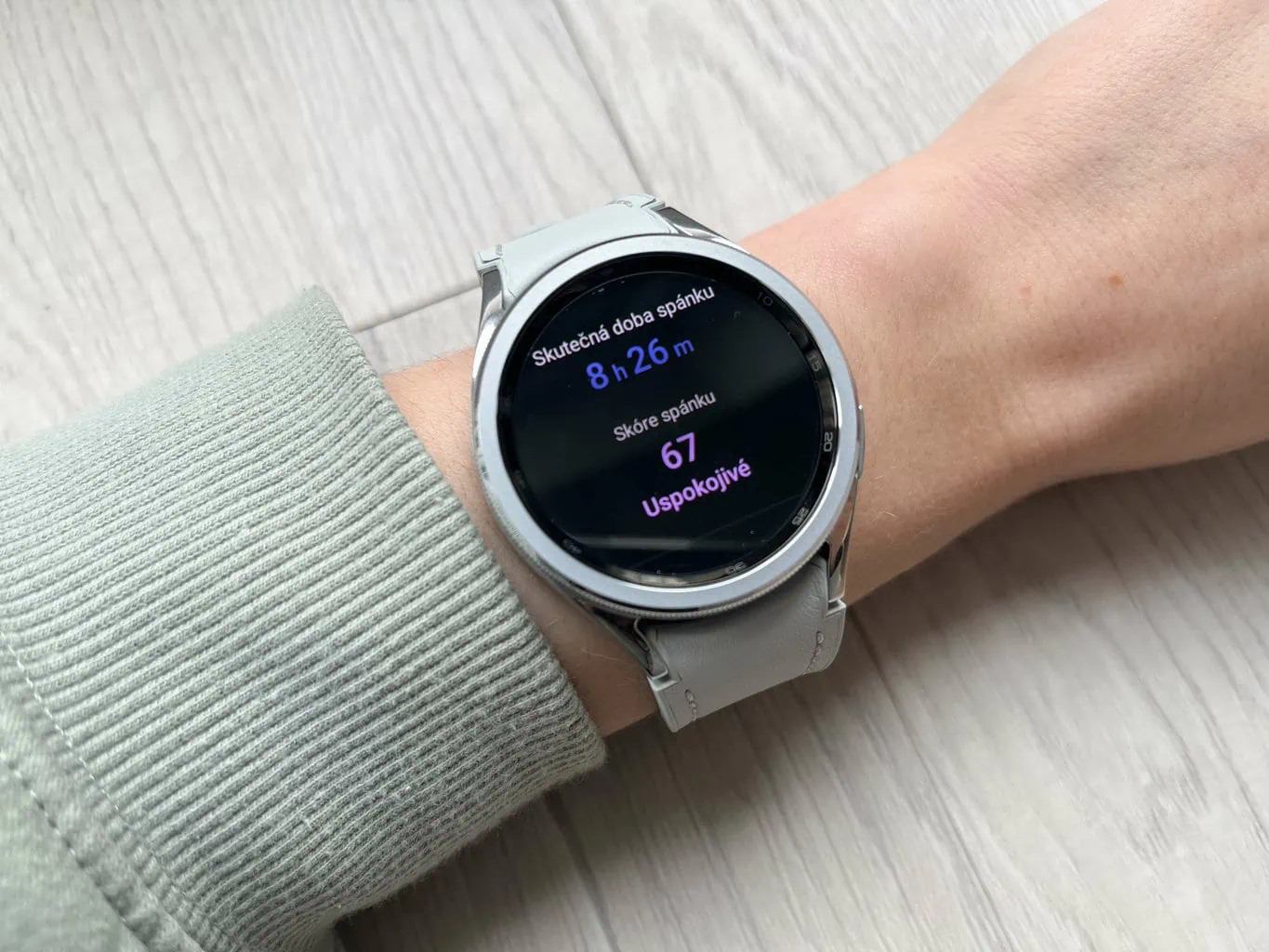 Samsung Galaxy Watch 6 Classic dostępny jest w dwóch wariantach rozmiarowych. Mniejsza wersja dla pań waży 52g, natomiast większa 59g. To właśnie damską wersję zegarka nosiłam na ręce podczas testów. Jednak całkiem subiektywnie muszę stwierdzić, że nawet mniejszy wariant zegarka był dość masywny na moim nadgarstku i Samsung Galaxy Watch 6 pasował mi znacznie lepiej. Największy problem miałam podczas snu, kiedy to musiałam się najpierw odpowiednio ułożyć (w przeciwnym razie obudowa zegarka uciskała moją skórę, powodując dyskomfort).