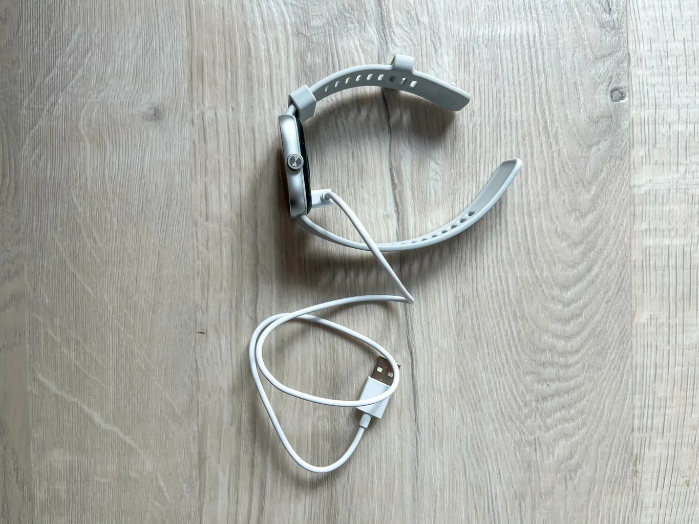 Ładowanie odbywa się za pomocą dołączonego do zestawu kabla z magnetycznymi stykami. Zegarek można naładować od 0 do 100% w około 1,5 godziny. Brakuje więc funkcji szybkiego ładowania, ale biorąc pod uwagę niską cenę nie jest to wielka wada.