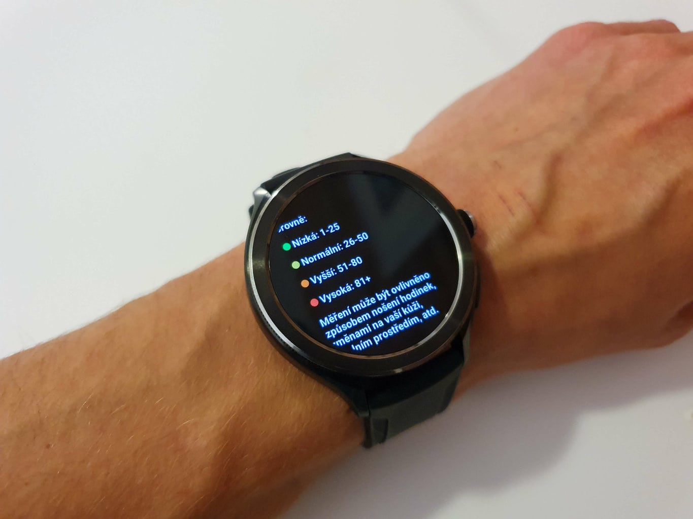 Szacowany przez zegarek poziom stresu zmieniał się w ciągu dnia zgodnie z naszymi oczekiwaniami. Na przykład po wypiciu dwóch filiżanek espresso odczyty zmieniły się z niskiego poziomu na normalny. Podobny wzrost zaobserwowano po spożyciu obfitego lunchu.