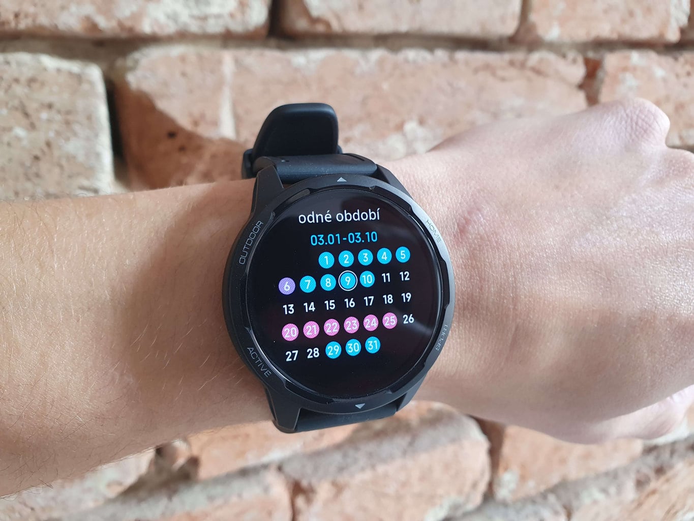 Zegarek wygląda mniej masywnie i bardziej sportowo w porównaniu z Xiaomi Watch S1. Ale to nie jedyny powód, dla którego możemy polecić go kobietom. Kolejnym powodem jest funkcja monitorowania cyklu menstruacyjnego. Po wprowadzeniu podstawowych danych dotyczących cyklu, można uzyskać dostęp do kalendarza, który opisuje przebieg cyklu.