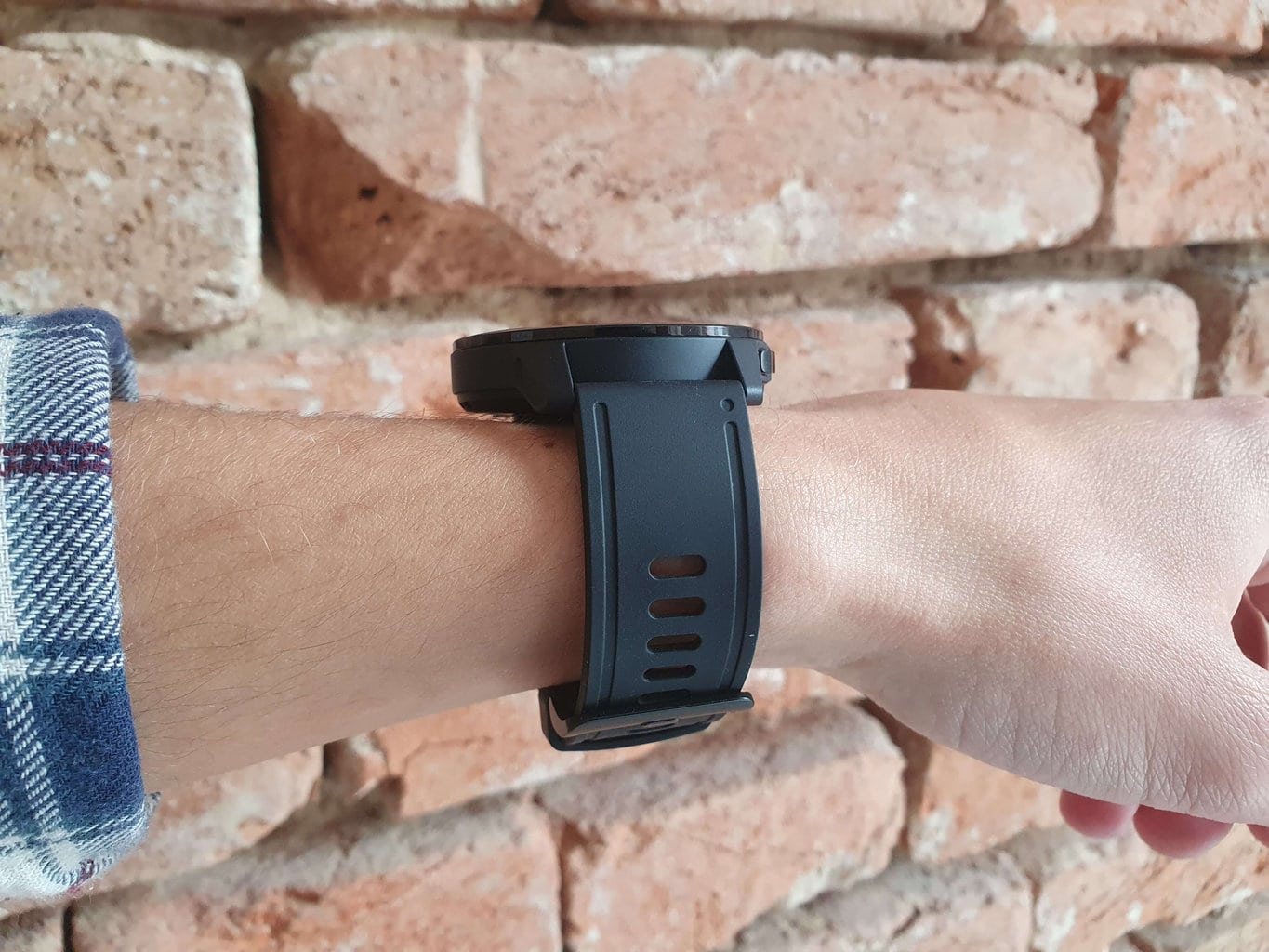 Obsługa zegarka sportowego za pomocą dotyku może stanowić problem w przypadku obfitego pocenia się lub po zamoczeniu zegarka w wodzie. Zanurzenie recenzowanego zegarka w wodzie powodowało zmiany na ekranie, jak w przypadku obsługi palcem. Przykładowo: szybkie menu otwierało się samoistnie lub ekran główny sam przenosił użytkownika do menu widżetów.