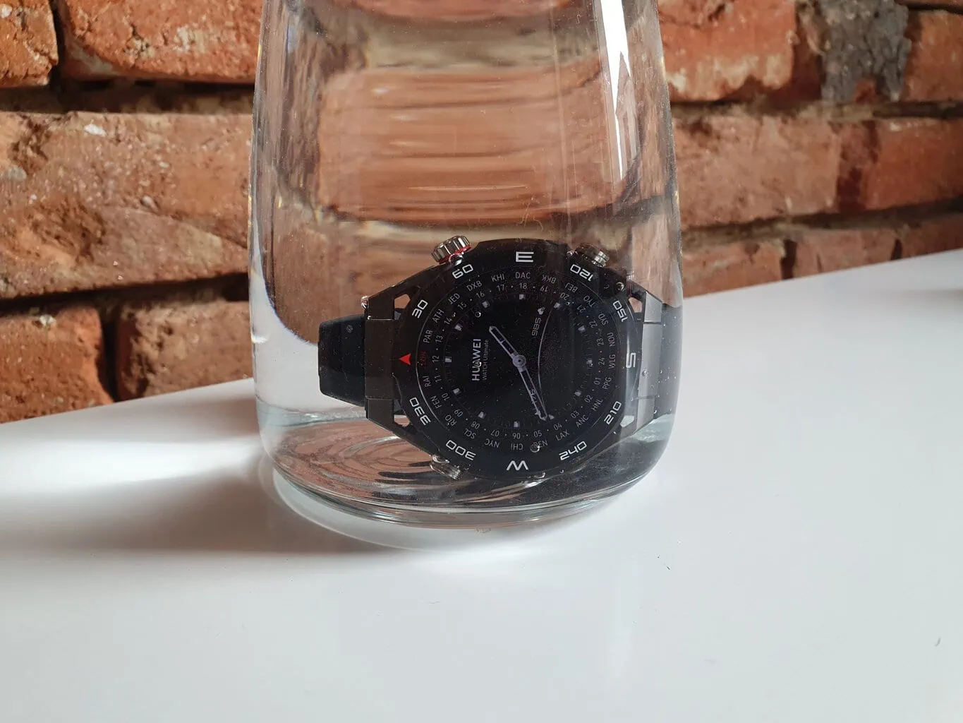 Huawei Watch Ultimate zaskoczył nas w redakcji przede wszystkim dołączonym do zestawu przedłużonym paskiem, który umożliwia noszenie go na skafandrze. Wytrzymałość zegarka jest potwierdzona certyfikatami ISO 22810:2010 oraz EN13319, przeznaczonymi dla sprzętu do nurkowania. Koperta zegarka powinna zatem wytrzymać realistyczne nurkowanie na głębokość do 100 metrów, co jest niezwykle wysoką wartością dla zegarka zorientowanego na styl życia.