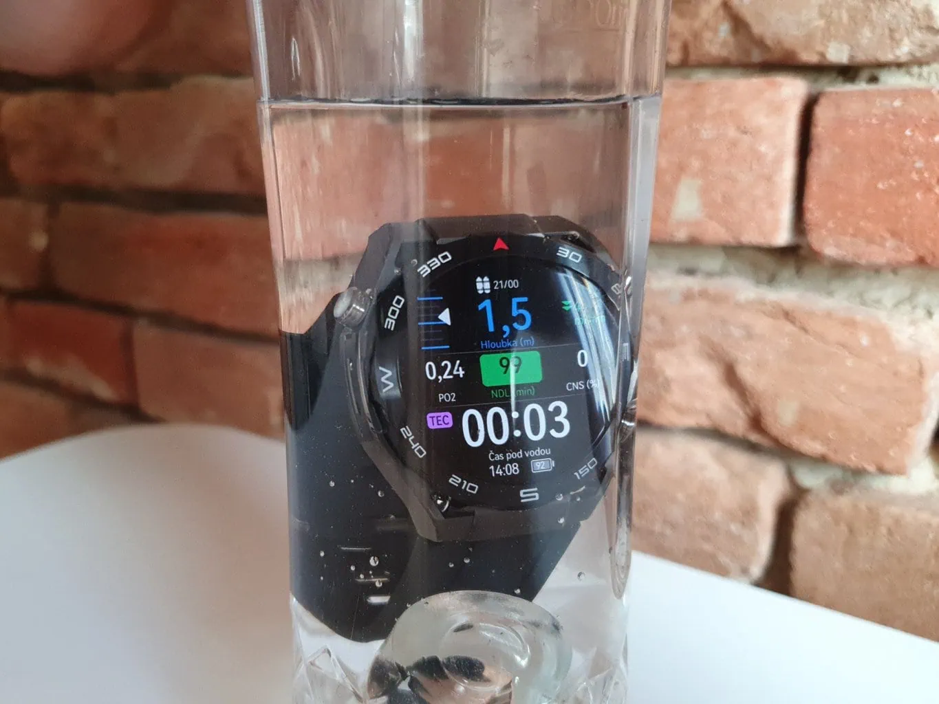 Apple Watch Ultra lub Ultra 2 obsługuje maksymalne realistyczne nurkowanie do głębokości 40 metrów. Oferuje przyjazną obsługę, a maksymalna jasność 2000 nitów sprawia, że wyświetlacz jest łatwy do odczytania pod wodą. Zegarek wykorzystuje algorytm dekompresyjny Bühlmann ZHL-16c i oferuje kilka trybów nurkowania, zarówno do ćwiczeń, jak i nurkowań technicznych.