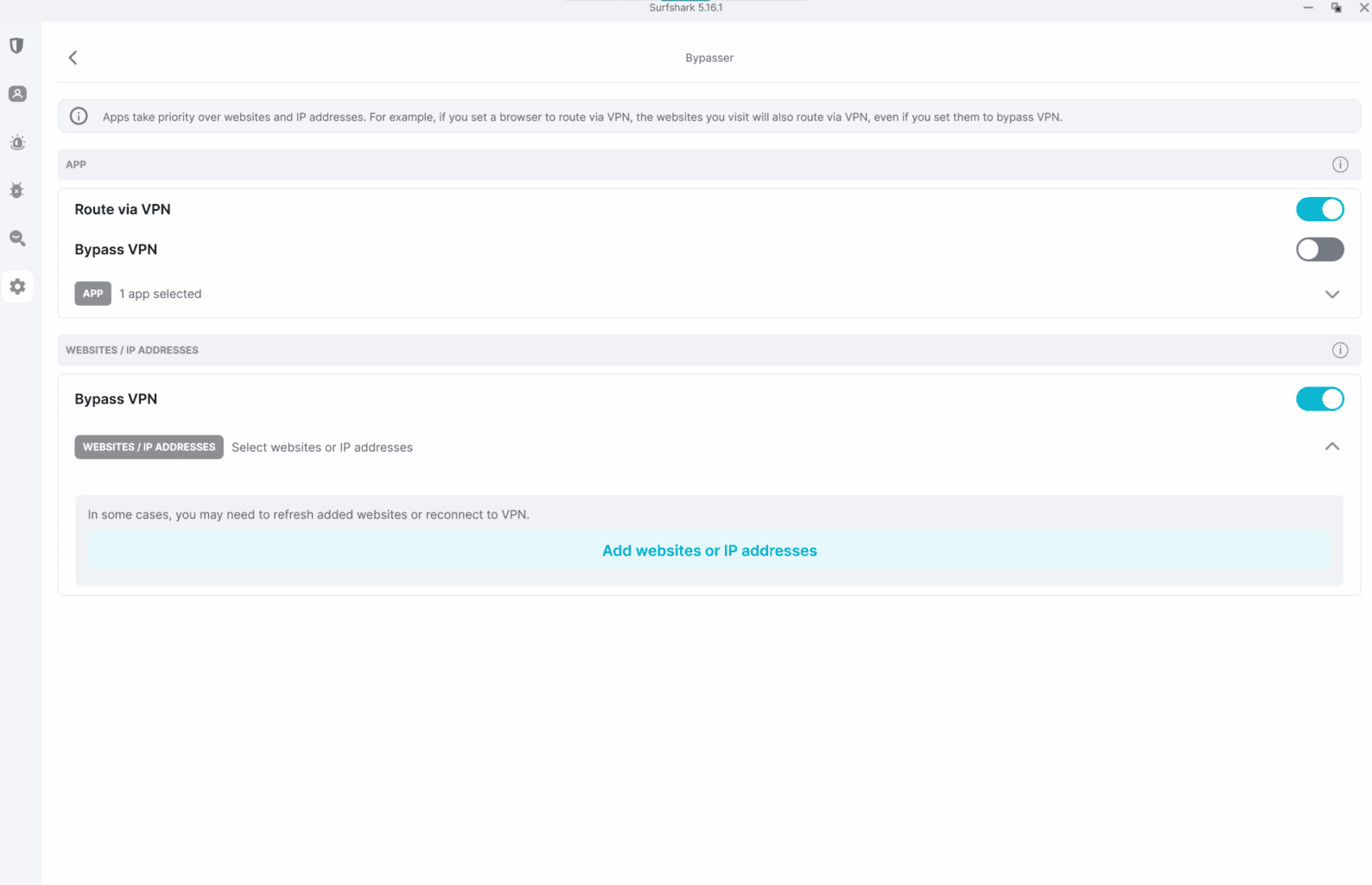 Funkcja Split tunneling pozwala wybrać, które aplikacje lub strony będą korzystać z połączenia przez VPN, a które nie. Praktycznym przykładem jest użycie dwóch przeglądarek internetowych – jedną możesz połączyć przez VPN, na przykład do pracy z zagranicy, podczas gdy druga pozostanie połączona przez lokalną sieć i posłuży do śledzenia lokalnych wiadomości lub korzystania z serwisów streamingowych. Możesz również ustawić konkretne strony internetowe, które mają lub nie mają korzystać z VPN.