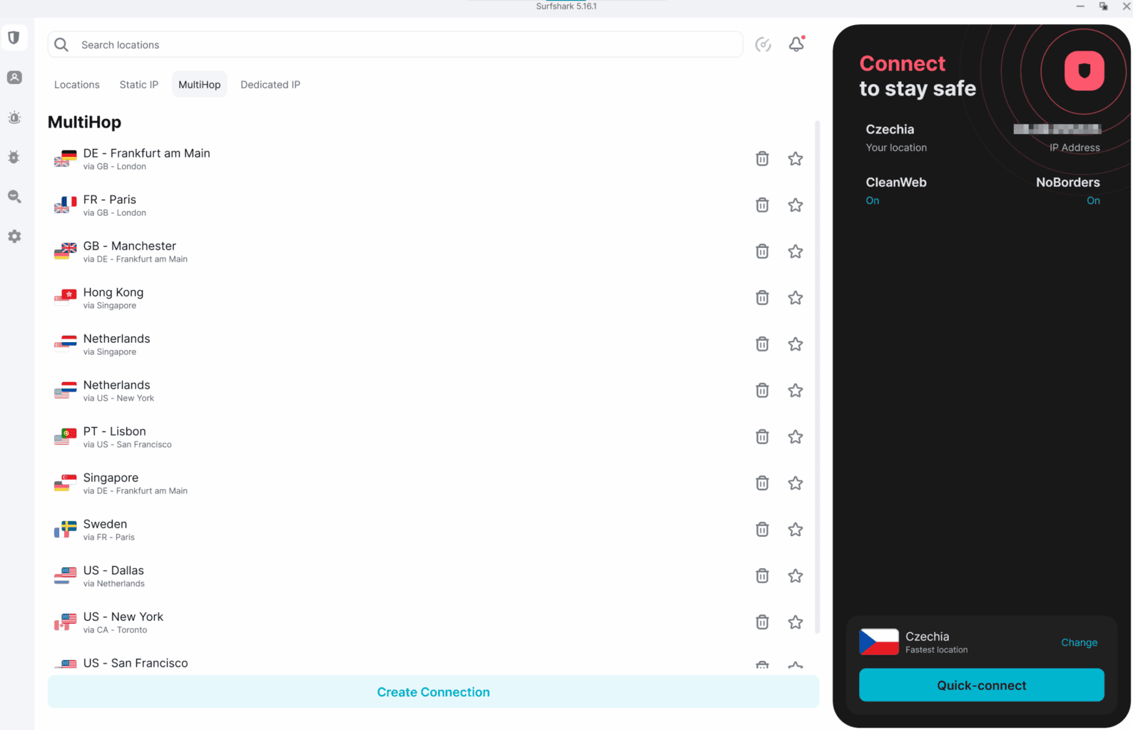 SurfShark oferuje kilka rodzajów specjalnych ustawień adresów IP. Static IP to funkcja, dzięki której SurfShark przypisuje Ci ten sam adres IP przy każdym połączeniu z danym serwerem. Opcja ta jest przydatna np. przy dostępie do systemów firmowych wymagających zaufanego IP lub przy korzystaniu z usług online, które przy każdej zmianie IP wymagają dodatkowej weryfikacji.